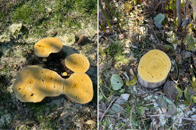 切株にした後、ドリルで穴を開けその中に除草剤の原液を散布し処理いたしました。