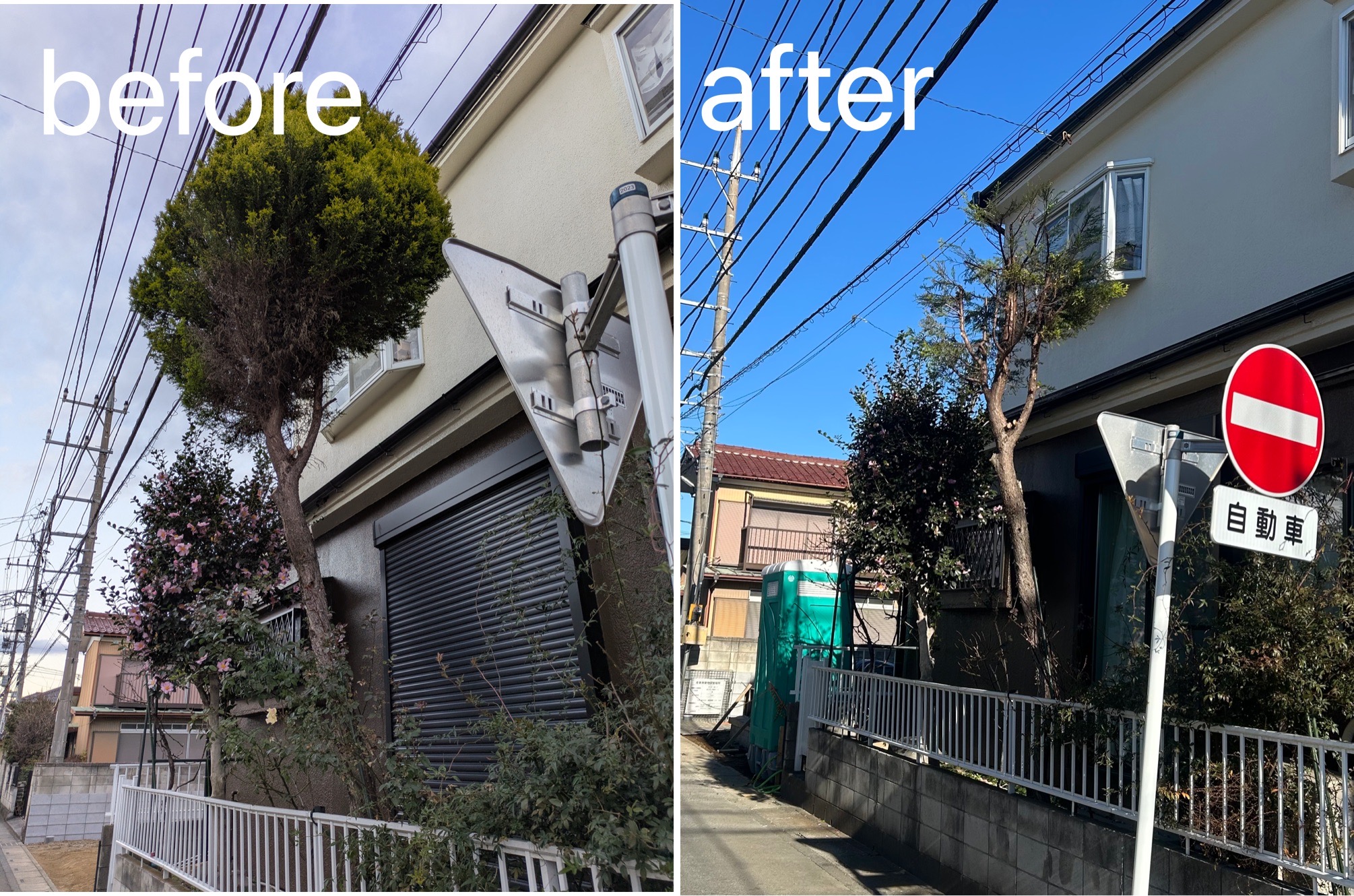 電線に接触しており高さを1mくらい下げて枯れ枝を取りました。