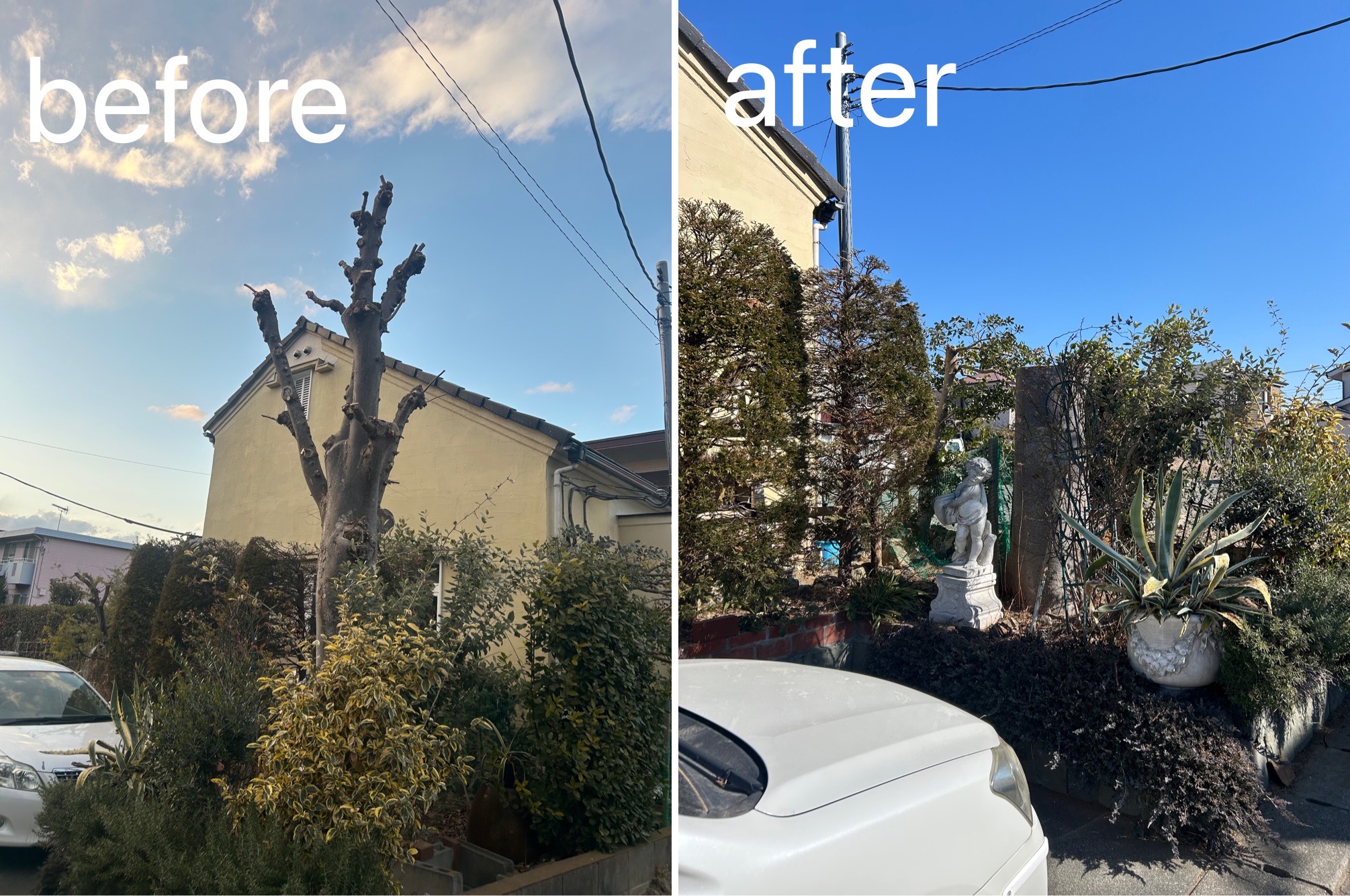 お客様のご要望で、下から切るのではなく少し残したいとのことで切口には薬も塗布しております!